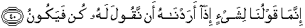 40. Sesungguhnya perkataan Kami terhadap sesuatu apabila Kami menghendakinya, Kami hanya mengatakan kepadanya: "kun (jadilah)", maka jadilah ia.