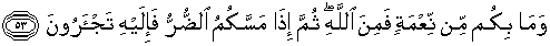 53. Dan apa saja nikmat yang ada pada kamu, maka dari Allah-lah (datangnya), dan bila kamu ditimpa oleh kemudharatan, maka hanya kepada-Nya-lah kamu meminta pertolongan.
