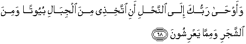 68. Dan Tuhanmu mewahyukan kepada lebah: "Buatlah sarang-sarang di bukit-bukit, di pohon-pohon kayu, dan di tempat-tempat yang dibikin manusia",