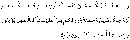 72. Allah menjadikan bagi kamu isteri-isteri dari jenis kamu