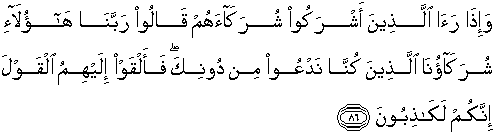 86. Dan apabila orang-orang yang mempersekutukan (Allah) melihat