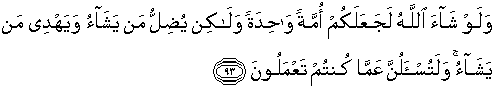 93. Dan kalau Allah menghendaki, niscaya Dia menjadikan kamu satu