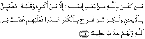 106. Barangsiapa yang kafir kepada Allah sesudah dia beriman (dia