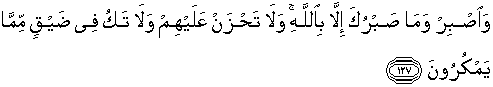 127. Bersabarlah (hai Muhammad) dan tiadalah kesabaranmu itu melainkan dengan pertolongan Allah dan janganlah kamu bersedih hati terhadap (kekafiran) mereka dan janganlah kamu bersempit dada terhadap apa yang mereka tipu dayakan.
