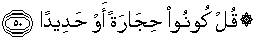 50. Katakanlah: "Jadilah kamu sekalian batu atau besi,