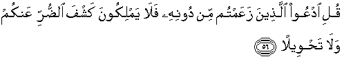 56. Katakanlah: "Panggillah mereka yang kamu anggap (tuhan)[856] selain