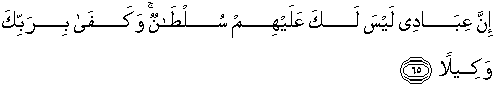 65. Sesungguhnya hamba-hamba-Ku, kamu tidak dapat berkuasa atas mereka. Dan cukuplah Tuhan-mu sebagai Penjaga."
