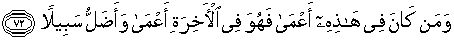 72. Dan barangsiapa yang buta (hatinya) di dunia ini, niscaya di akhirat (nanti) ia akan lebih buta (pula) dan lebih tersesat dari jalan (yang benar).