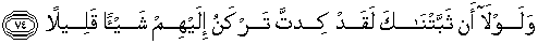 74. Dan kalau Kami tidak memperkuat (hati)mu, niscaya kamu hampir-hampir condong sedikit kepada mereka,
