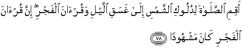78. Dirikanlah shalat dari sesudah matahari tergelincir sampai gelap malam dan