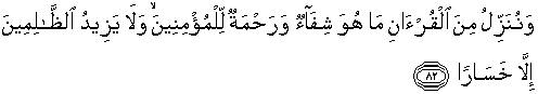 82. Dan Kami turunkan dari Al Quran suatu yang menjadi penawar dan rahmat bagi orang-orang yang beriman dan Al Quran itu tidaklah menambah kepada orang-orang yang zalim selain kerugian.