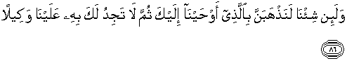 86. Dan sesungguhnya jika Kami menghendaki, niscaya Kami lenyapkan apa yang