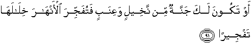 91. atau kamu mempunyai sebuah kebun korma dan anggur, lalu kamu alirkan sungai-sungai di celah kebun yang deras alirannya,