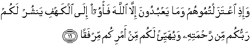 16. Dan apabila kamu meninggalkan mereka dan apa yang mereka sembah selain