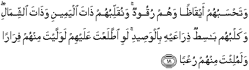 18. Dan kamu mengira mereka itu bangun, padahal mereka tidur; Dan