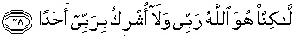 38. Tetapi aku (percaya bahwa): Dialah Allah, Tuhanku, dan aku tidak mempersekutukan seorangpun dengan Tuhanku.
