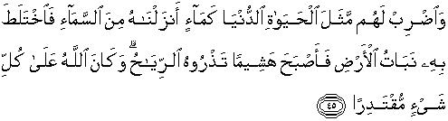 45. Dan berilah perumpamaan kepada mereka (manusia), kehidupan dunia sebagai