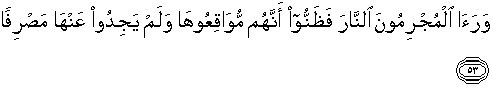 53. Dan orang-orang yang berdosa melihat neraka, maka mereka meyakini, bahwa mereka akan jatuh ke dalamnya dan mereka tidak menemukan tempat berpaling dari padanya.