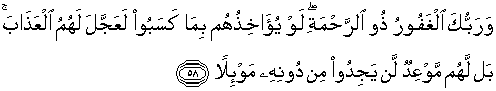 58. Dan Tuhanmulah yang Maha Pengampun, lagi mempunyai rahmat. Jika Dia