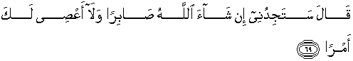 69. Musa berkata: "Insya Allah kamu akan mendapati aku sebagai orang yang sabar, dan aku tidak akan menentangmu dalam sesuatu urusanpun."
