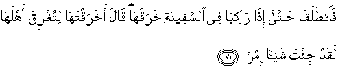 71. Maka berjalanlah keduanya, hingga tatkala keduanya menaiki perahu lalu