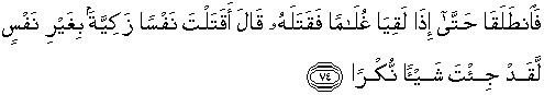 74. Maka berjalanlah keduanya; hingga tatkala keduanya berjumpa dengan