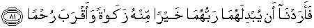 81. Dan kami menghendaki, supaya Tuhan mereka mengganti bagi mereka dengan anak lain yang lebih baik kesuciannya dari anaknya itu dan lebih dalam kasih sayangnya (kepada ibu bapaknya).