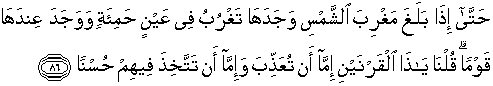 86. Hingga apabila dia telah sampai ketempat terbenam matahari, dia melihat