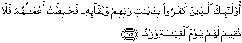 105. Mereka itu orang-orang yang telah kufur terhadap ayat-ayat Tuhan mereka