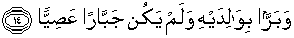 14. dan seorang yang berbakti kepada kedua orang tuanya, dan bukanlah ia orang yang sombong lagi durhaka.