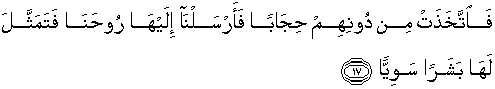 17. maka ia mengadakan tabir (yang melindunginya) dari mereka; lalu Kami mengutus roh Kami
