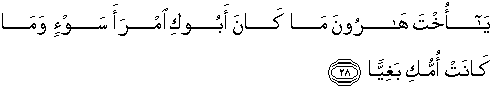 , karena ia seorang wanita yang shaleh seperti keshalehan Nabi Harun a.s.