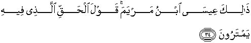 34. Itulah Isa putera Maryam, yang mengatakan perkataan yang benar, yang mereka berbantah-bantahan tentang kebenarannya.