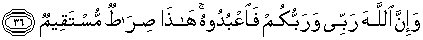 36. Sesungguhnya Allah adalah Tuhanku dan Tuhanmu, maka sembahIah Dia oleh kamu sekalian. Ini adalah jalan yang lurus.