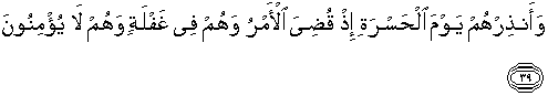 39. Dan berilah mereka peringatan tentang hari penyesalan, (yaitu) ketika segala perkara telah diputus. Dan mereka dalam kelalaian dan mereka tidak (pula) beriman.