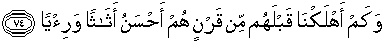 74. Berapa banyak umat yang telah Kami binasakan sebelum mereka