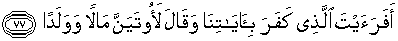77. Maka apakah kamu telah melihat orang yang kafir kepada ayat-ayat Kami dan ia mengatakan: "Pasti aku akan diberi harta dan anak."