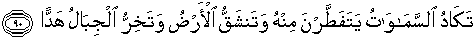90. hampir-hampir langit pecah karena ucapan itu, dan bumi belah, dan gunung-gunung runtuh,