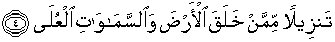 4. yaitu diturunkan dari Allah yang menciptakan bumi dan langit yang tinggi.