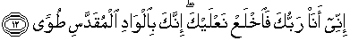 12. Sesungguhnya Aku inilah Tuhanmu, maka tanggalkanlah kedua terompahmu; sesungguhnya kamu berada dilembah yang suci, Thuwa.