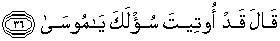 36. Allah berfirman: "Sesungguhnya telah diperkenankan permintaanmu, hai Musa."