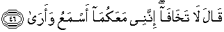 46. Allah berfirman: "Janganlah kamu berdua khawatir, sesungguhnya Aku beserta kamu berdua, Aku mendengar dan melihat."