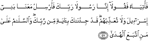 47. Maka datanglah kamu berdua kepadanya (Fir'aun) dan katakanlah: