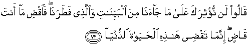 72. Mereka berkata: "Kami sekali-kali tidak akan mengutamakan