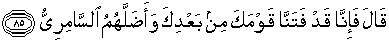 85. Allah berfirman: "Maka sesungguhnya Kami telah menguji kaummu sesudah kamu tinggalkan, dan mereka telah disesatkan oleh Samiri