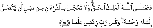 114. Maka Maha Tinggi Allah Raja Yang sebenar-benarnya, dan