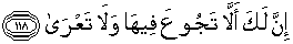 118. Sesungguhnya kamu tidak akan kelaparan di dalamnya dan tidak akan telanjang,