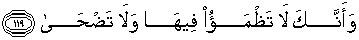 119. dan sesungguhnya kamu tidak akan merasa dahaga dan tidak (pula) akan ditimpa panas matahari di dalamnya."