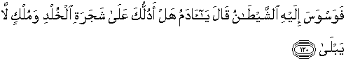 120. Kemudian syaitan membisikkan pikiran jahat kepadanya, dengan