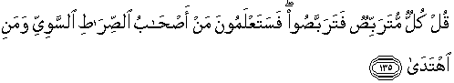 135. Katakanlah: "Masing-masing (kita) menanti, maka nantikanlah oleh kamu sekalian! Maka kamu kelak akan mengetahui, siapa yang menempuh jalan yang lurus dan siapa yang telah mendapat petunjuk."
